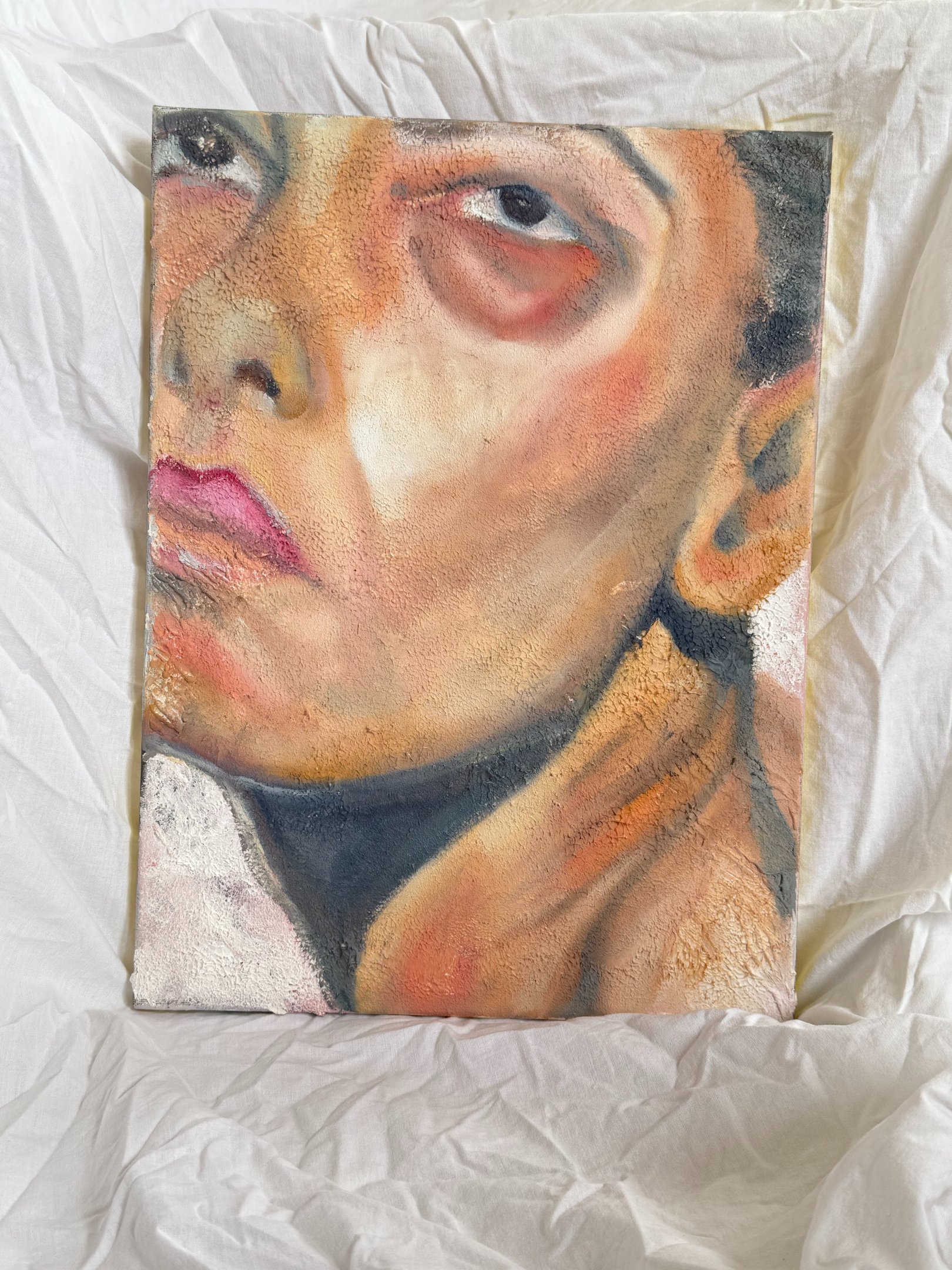 Each painting tells a unique story, a fragment of intimacy that becomes visible, captured on canvas among faces. These works invite the viewer to personal reflection through the exploration of universal feelings. Each piece functions as a mirror where the observer can discover reflections of their own experience – an invitation to feel, to think, to recognize oneself.
