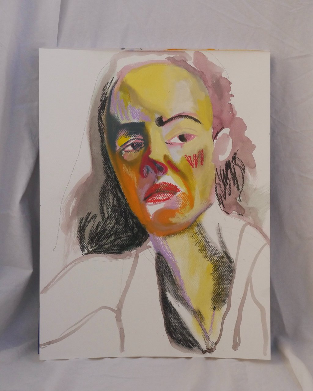 Oil pastels, charcoal on paper