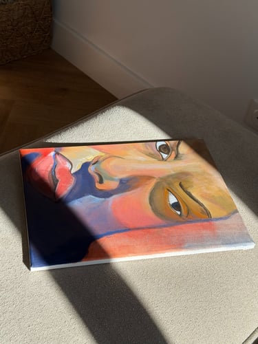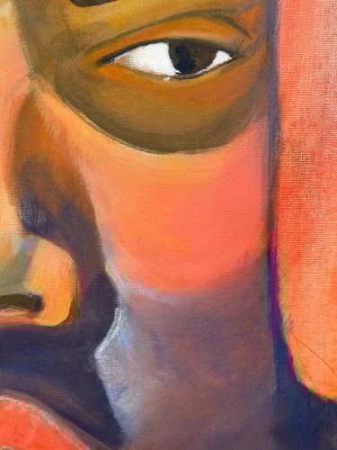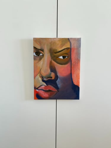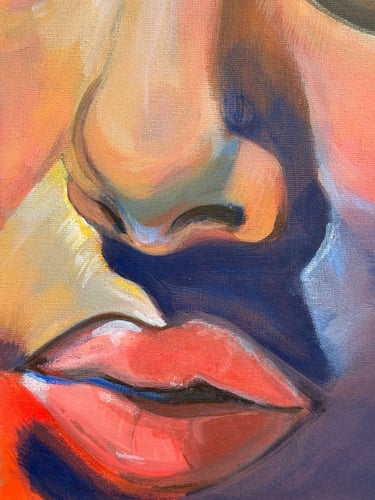 ''In crafting this painting, I channeled profound emotions and the raw complexity of human expressions. Using vibrant, contrasting acrylics, I sought to capture the intensity and subtlety of feelings through an expressionist lens. This piece speaks to the strength and vulnerability that coexist within us all.''